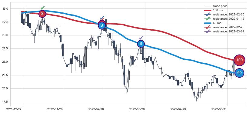 ⚂ 2022-07-04-日均线向上突破,2022-08-08-日重新下穿均线破位,均线阻力再次生效