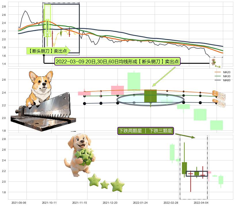 | 2 🅚:下跌孤独十字星 ➕ 🎢:【断头铡刀】卖出点均线组合卖出点信号形成后,猜想后续支撑破位,后市持续下跌 ☞ 看空信号 ⇥ 【均线】交织【🅚线】⇥ 综合量化分数: 47 | > |