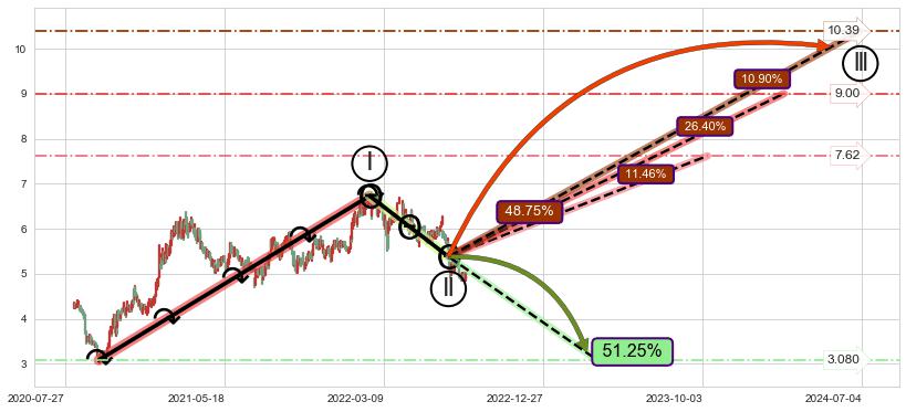 ➣ 2022-07-13到达第❷价格目标位置5.38
