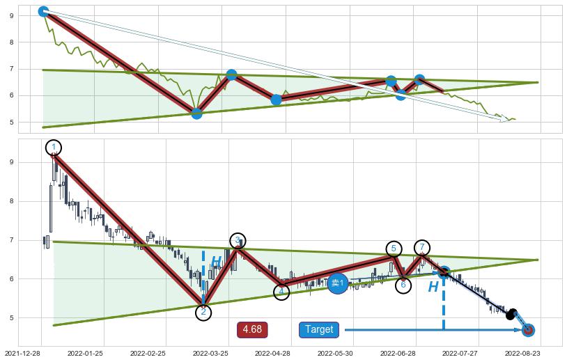 ➣ 【已确认突破】下降【对称】三角形整理 起点:2022-01-03,突破点:2022-07-12,形态共126交易日