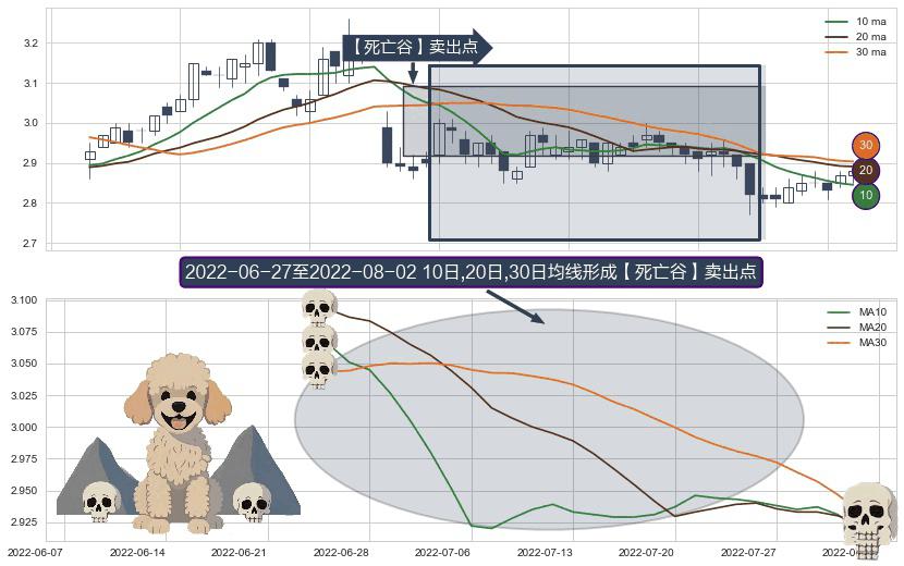 ⚀ 2022-06-28-日至2022-08-02-日显现 10日-20日-30日均线 【死亡谷】卖出点 看空信号,后市看跌,卖出