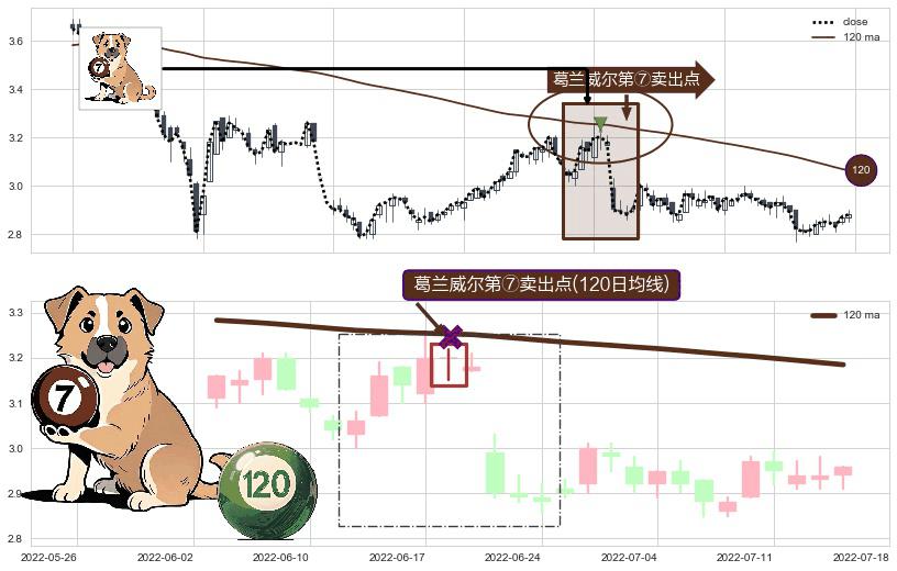 ⚀ 2022-06-20-日显现 葛兰威尔均线 120日均线 第⑦卖出点 下降趋势的中继信号,后市看跌,卖出信号