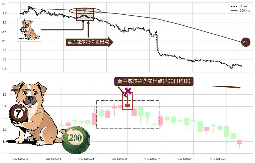 形态多维评估: ⚀ 2021-05-31-日显现 葛兰威尔均线 200日均线 第⑦卖出点 下降趋势的中继信号,后市看跌,卖出信号