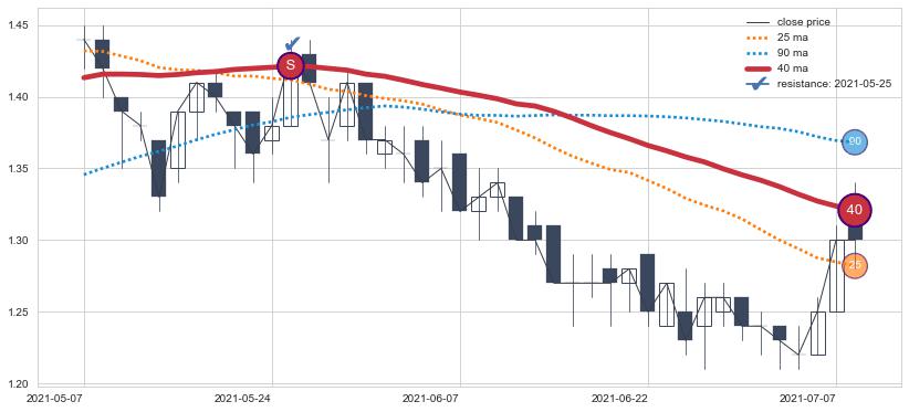 下跌趋势2021-05-07-2021-07-08,均线40确认关键阻力1处