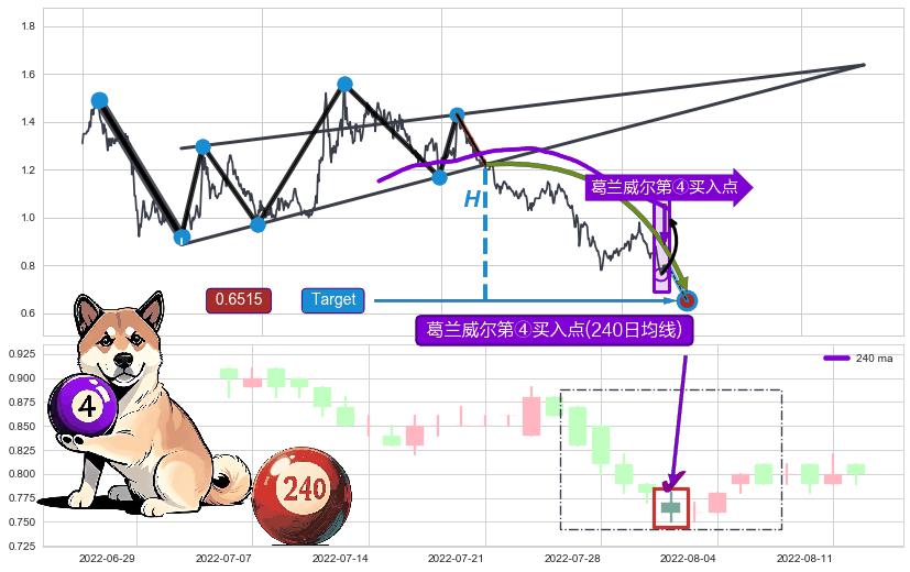 ➣ D点拟合预测价格0.6048,距离最后交易收盘价格0.8000相差 -24.40%