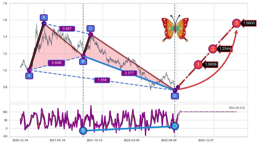 ➣ 已完成【蝴蝶】形态起点X: 2020-12-23, 终点D: 2022-08-02, 共393交易日
