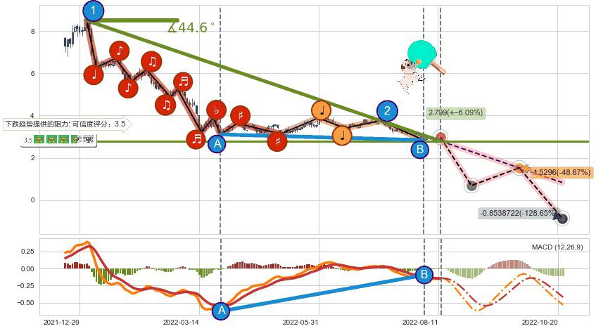 ♘ 阻力价格位3.457,可信任强度73.43%,距离最后交易2022-08-12形成的收盘价格2.980相差 +16.02%