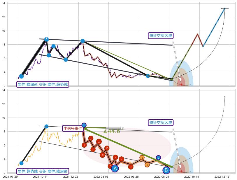 ➣ 【未确认突破,预测即将形成突破】降⚑旗形起点:2021-08-06, 预测突破点:2022-09-27,形态共282交易日