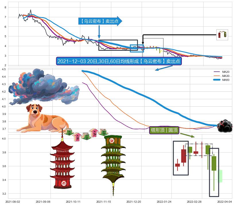 | 2 🅚:塔形顶 | 圆顶 ➕ 🎢:【绝命跳】卖出点均线组合卖出点信号形成后,猜想后续向下脱离整理形态,持续破位下行 ☞ 看空信号 ⇥ 【均线】交织【🅚线】⇥ 综合量化分数: 47 | > |