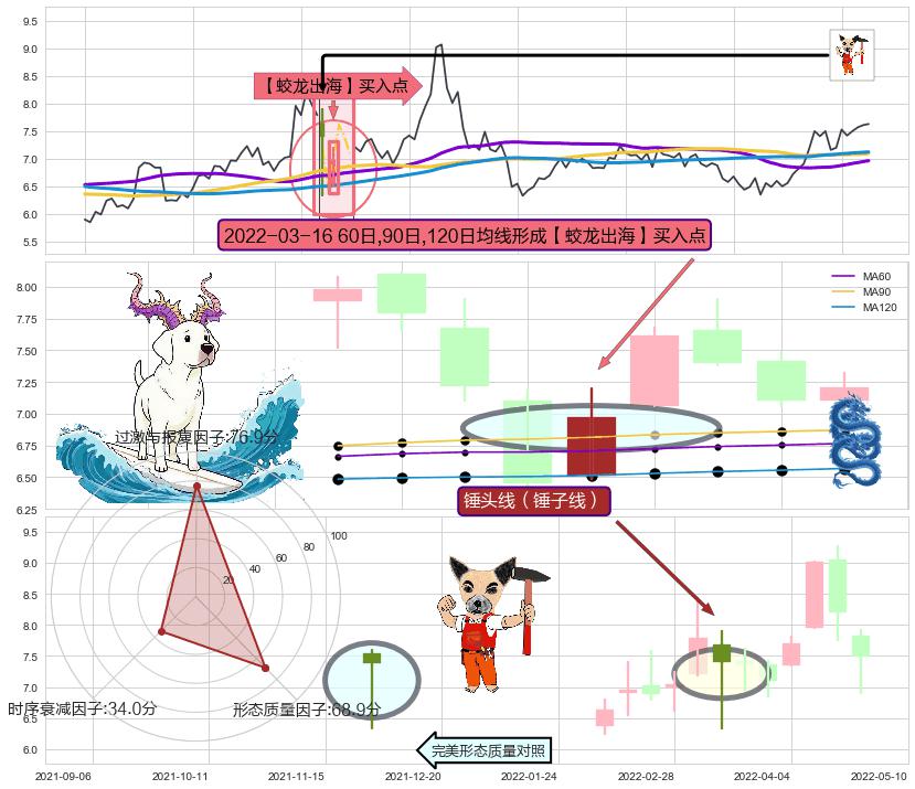 | 2 🅚:锤头线(锤子线) ➕ 🎢:【鱼跃龙门】买入点均线组合买入点信号形成后,猜想后续充分蓄势之后,上涨突破关键阻力位 ☞ 看多信号 ⇥ 【均线】交织【🅚线】⇥ 综合量化分数: 54 | > |