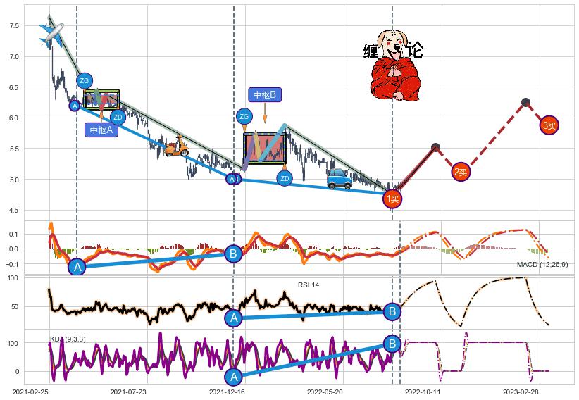 | 4 🅚:【高山滑雪】买入点 ➕ ☯️:缠论买卖点下降缠中枢AB形成后猜想拐点1买已到达,猜想后续持续拉升(均值回复) ☞ 看多信号 ⇥ 【均线】交织【图形】⇥ 综合量化分数: 52 | > |