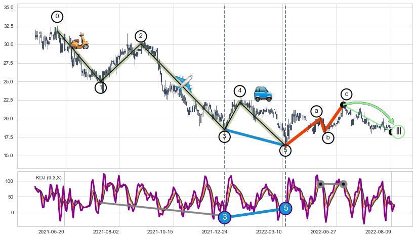➣ a,c调整浪MACD, RSI, KDJ走势都【未出现】背离,abc走势延续, 5浪反转概率增强