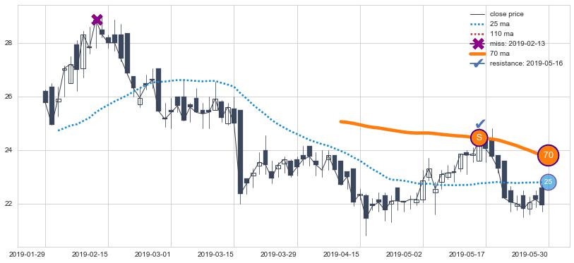 ⚀ 2022-05-25-日至2022-07-18-日显现 30日-60日-90日均线 【死亡谷】卖出点 看空信号,后市看跌,卖出