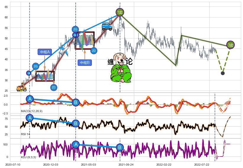 | 22 🅚:下跌两颗星 | 下跌三颗星 ➕ 🌊:波浪理论上涨5浪延续回调:猜想回调C点击穿破位,猜想持续蓄力回调abc下跌方向(大周期趋势均值回复后小周期持续趋势跟踪) ☞ 看空信号 ⇥ 【🅚线】交织【图形】⇥ 综合量化分数: 44 | > |