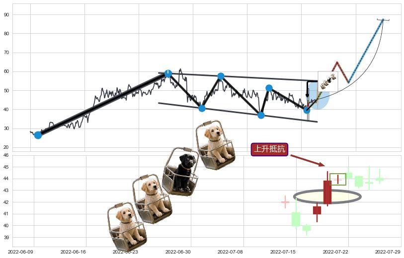 ➢ 收盘价(2022-03-14: 37.90 )→回踩→第一根k线高点(2022-03-09: 38.15 )