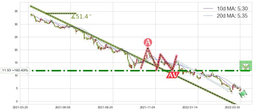 ♘ 阻力价格位11.93,可信任强度87.60%,距离最后交易2022-03-31形成的收盘价格4.58相差 +160.43%