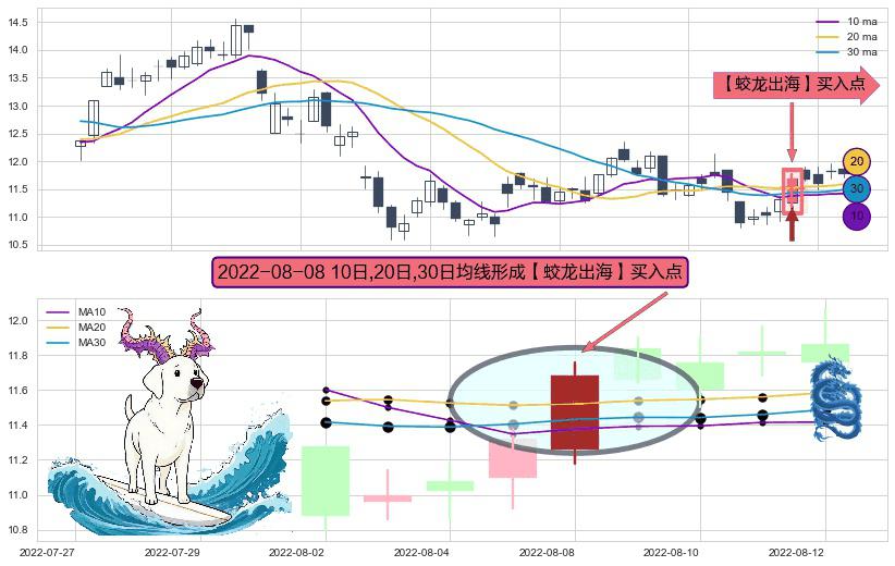 形态多维评估: ⚀ 2022-08-08日显现 10日-20日-30日均线 【蛟龙出海】买入点 看多信号,后市看涨,买入