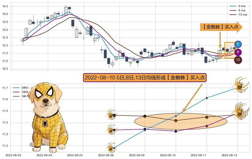 形态多维评估: ⚀ 2022-08-10日显现 5日-8日-13日均线 【金蜘蛛】买入点 看多信号,后市看涨,买入