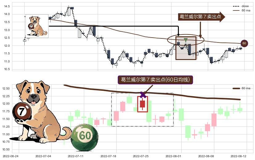 形态多维评估: ⚀ 2022-07-22-日显现 葛兰威尔均线 60日均线 第⑦卖出点 下降趋势的中继信号,后市看跌,卖出信号