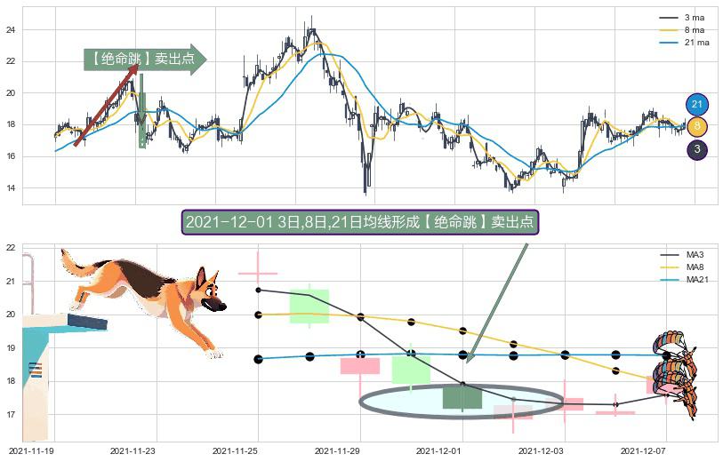 ⚀ 2021-12-01日显现 3日-8日-21日均线 【绝命跳】卖出点 看空信号,后市看跌,卖出