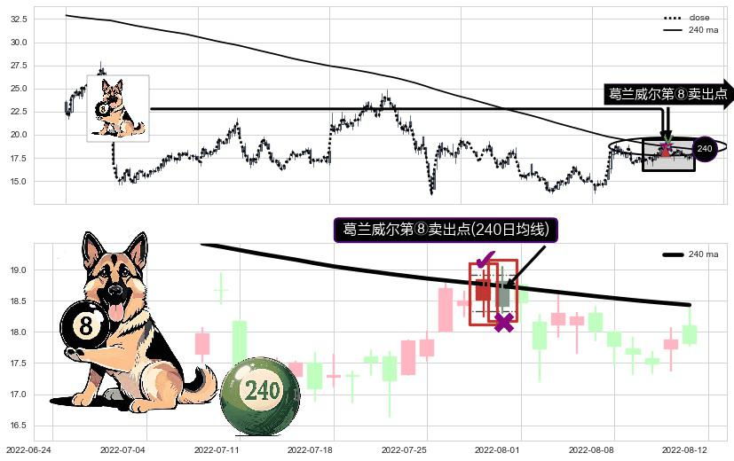 ⚀ 2022-07-29-日显现 葛兰威尔均线 240日均线 第⑧卖出点 下降趋势的中继信号,后市看跌,卖出信号
