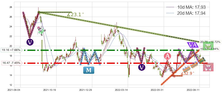 ♘ 阻力价格位19.16,可信任强度91.13%,距离最后交易2022-08-12形成的收盘价格17.80相差 +7.66%