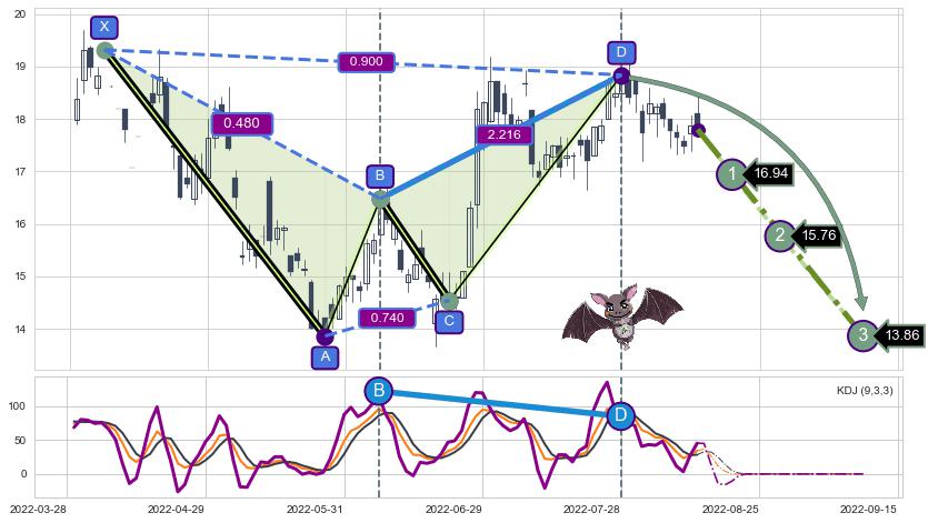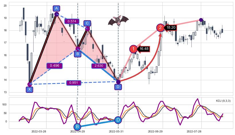 ➣ 已完成【蝙蝠】形态起点X: 2022-03-15, 终点D: 2022-05-26, 共47交易日