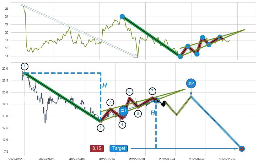 ➣ 2022-06-28到达第❷价格目标位置18.20