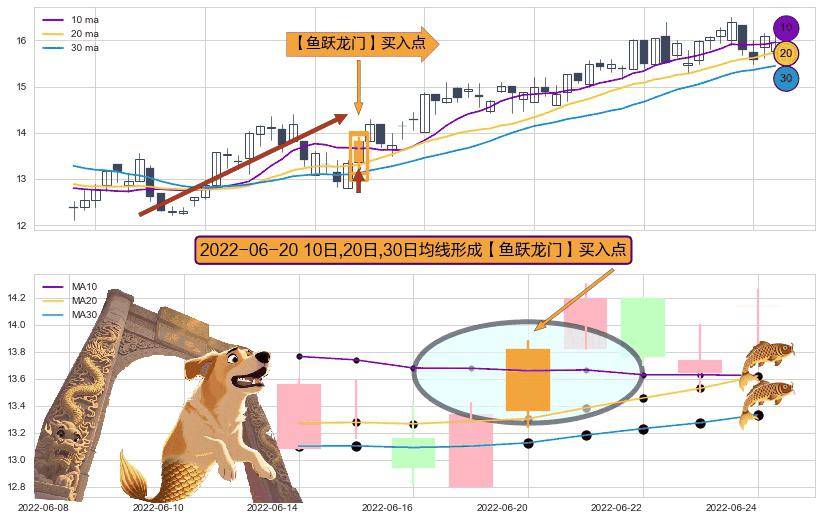 形态多维评估: ⚀ 2022-06-20日显现 10日-20日-30日均线 【鱼跃龙门】买入点 看多信号,后市看涨,买入