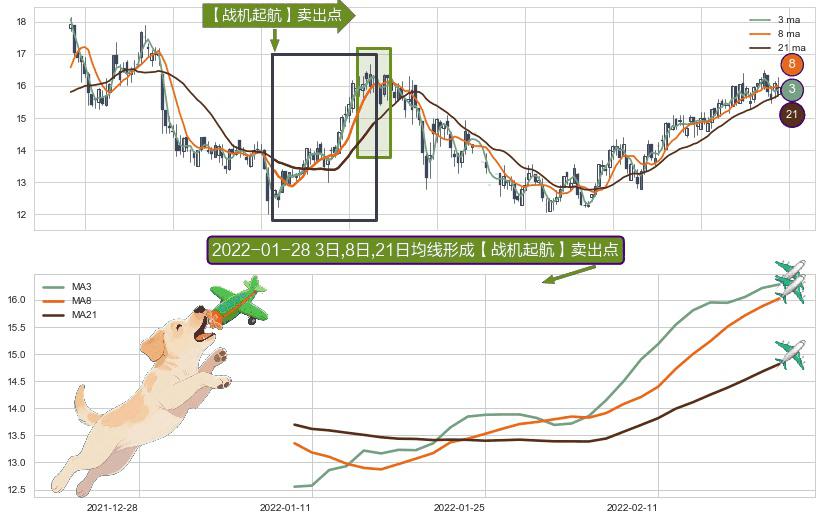 形态多维评估: ⚀ 2022-01-10日-2022-02-22日显现 3日-8日-21日均线 【战机起航】卖出点 看空信号,后市看跌,卖出