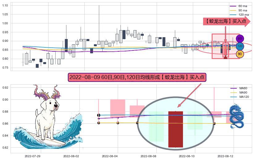 ⚀ 2022-08-09日显现 60日-90日-120日均线 【蛟龙出海】买入点 看多信号,后市看涨,买入