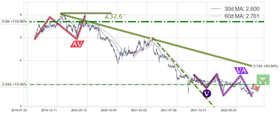 ♘ 阻力价格位2.939,可信任强度35.33%,距离最后交易2022-08-12形成的收盘价格2.600相差 +13.04%