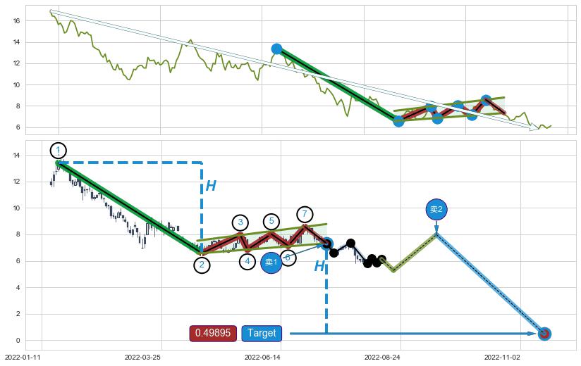 ➣ 最小中继整理跌幅→𝐇: 6.82 (𝐇旗杆的长度:旗杆起点→顶点)