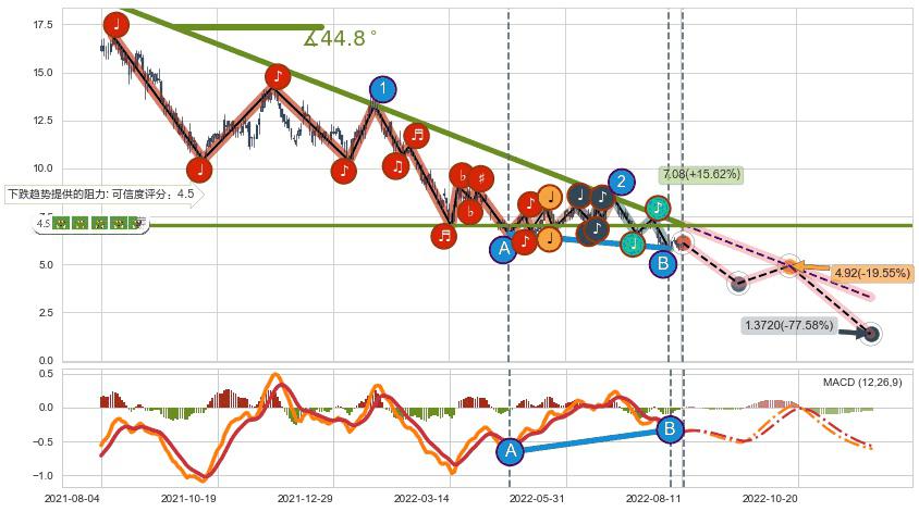 ➣ 预测:2022-10-17,【试探阻力】稳定目前下跌趋势的前提下,预测价格:4.92