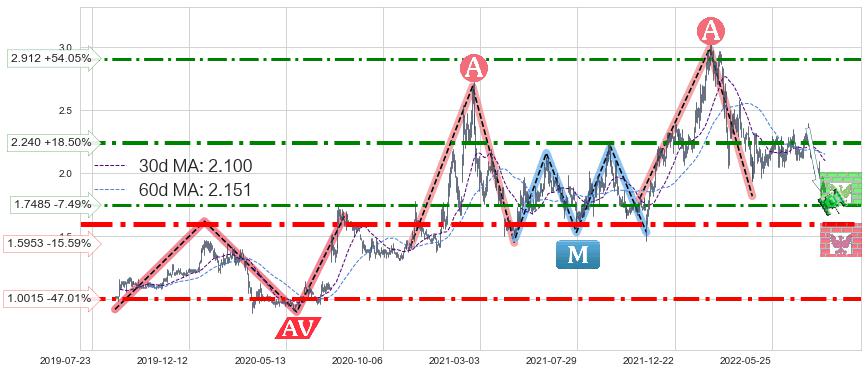 ♘ 阻力价格位2.240,可信任强度74.44%,距离最后交易2022-08-12形成的收盘价格1.8900相差 +18.50%