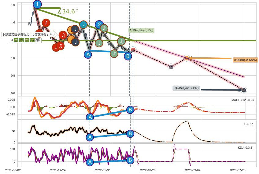 ➣ 预测:2023-01-27,【试探阻力】稳定目前下跌趋势的前提下,预测价格:0.9958