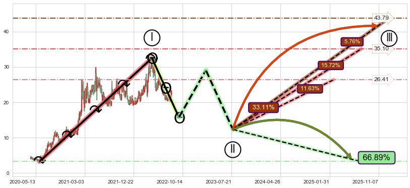 ➣ AI预测: 假定反转启动后, 第❸目标位置(2023-12-14, 32.50)