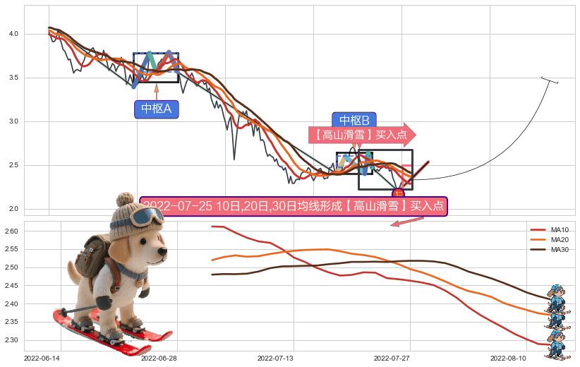➣ 【中枢B】:2022-06-14-2022-07-13,中枢由5笔构成,共21交易日, ZG=2.600, ZD=2.470