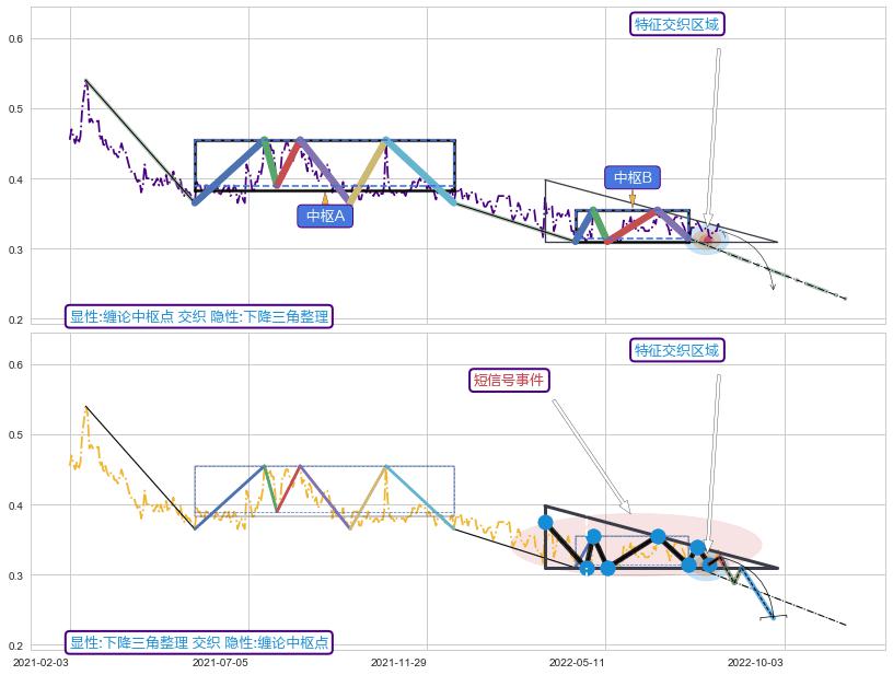 ➢ 【中枢B】:2022-04-07-2022-07-19,中枢由5笔构成,共64交易日, ZG=0.35500, ZD=0.31500
