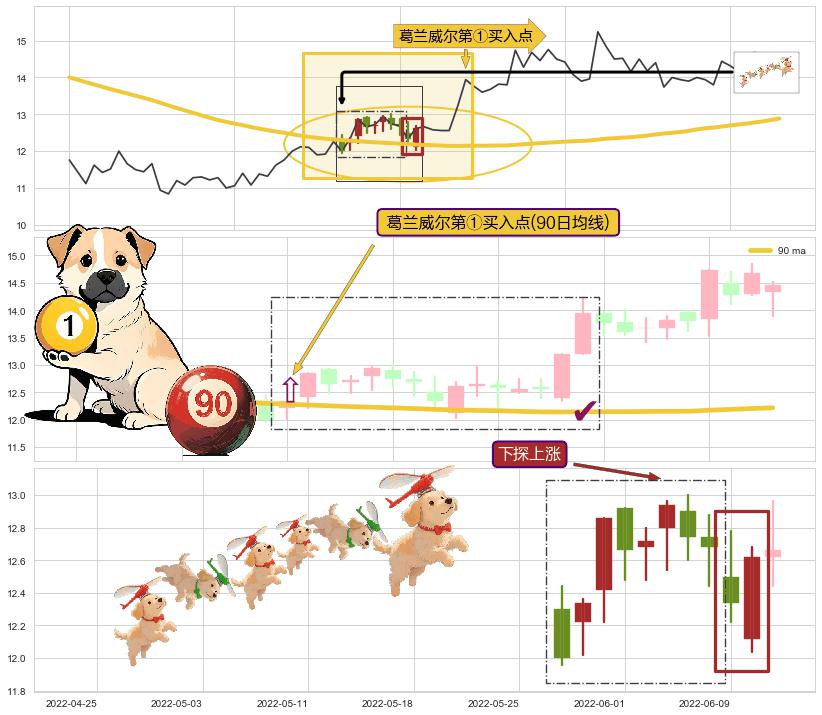 | 3 🅚:多方尖兵 ➕ 🎢:葛兰威尔第①买入点买入点信号形成后,猜想后续下跌趋势反转上涨趋势(均值回复) ☞ 看多信号 ⇥ 【均线】交织【🅚线】⇥ 综合量化分数: 56 | > |