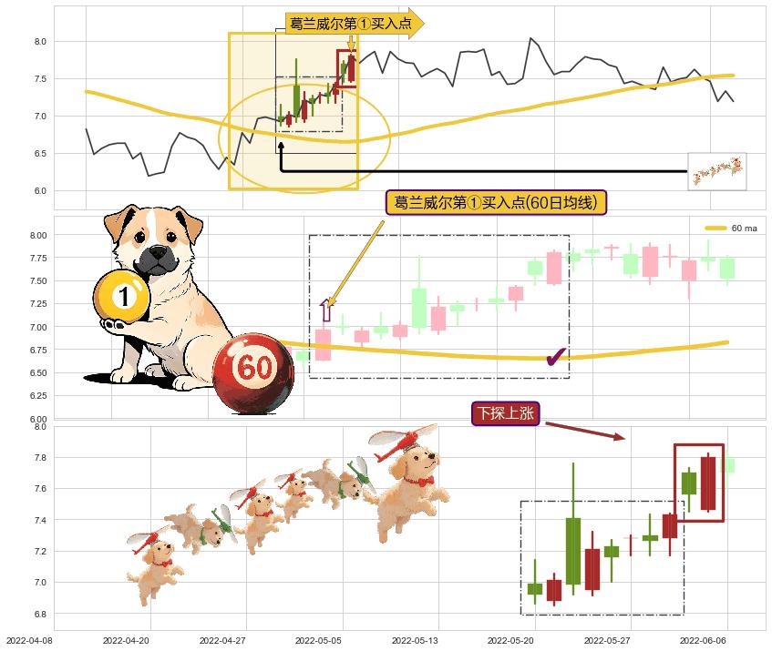 | 3 🅚:多方炮 ➕ 🎢:葛兰威尔第①买入点买入点信号形成后,猜想后续下跌趋势反转上涨趋势(均值回复) ☞ 看多信号 ⇥ 【均线】交织【🅚线】⇥ 综合量化分数: 53 | > |