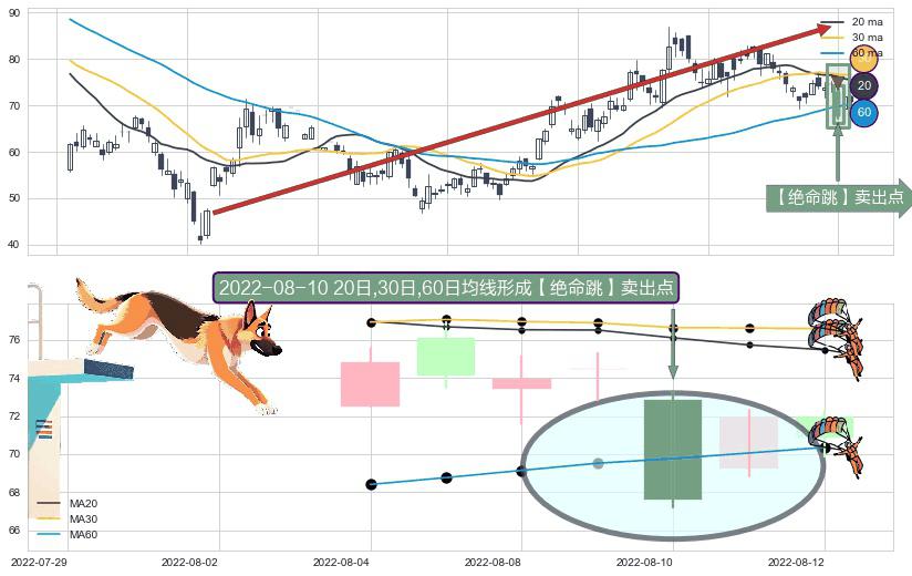 ⚀ 2022-08-10日显现 20日-30日-60日均线 【绝命跳】卖出点 看空信号,后市看跌,卖出