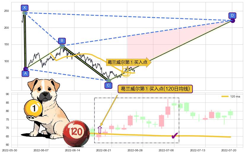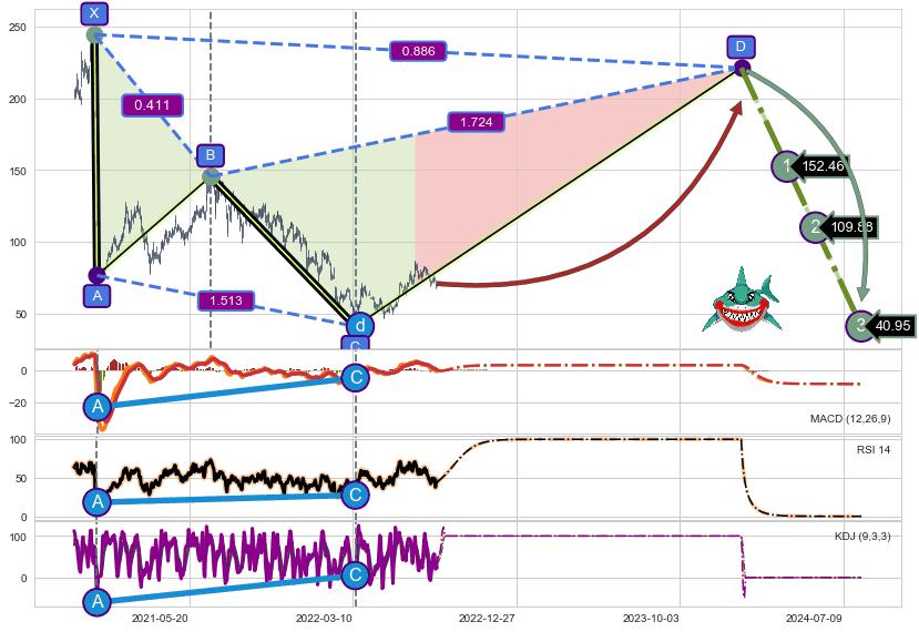 ➣ D点拟合预测价格221.38,距离最后交易收盘价格70.85相差 +212.47%