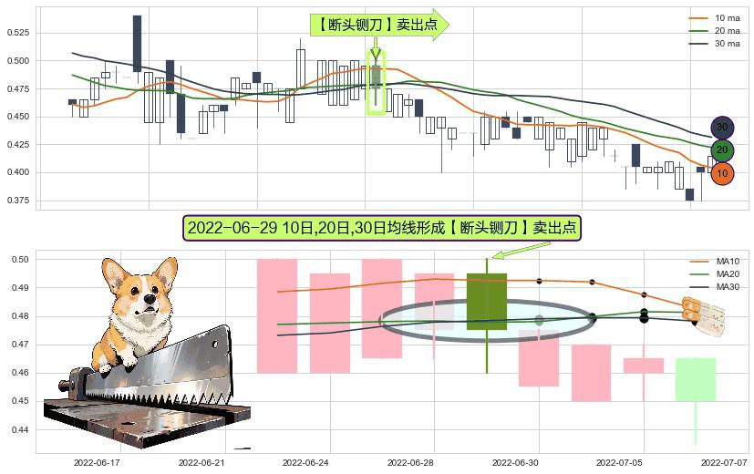 ⚀ 2022-06-29日显现 10日-20日-30日均线 【断头铡刀】卖出点 看空信号,后市看跌,卖出