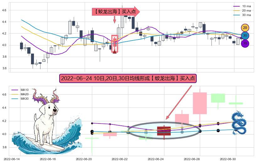 形态多维评估: ⚀ 2022-06-24日显现 10日-20日-30日均线 【蛟龙出海】买入点 看多信号,后市看涨,买入