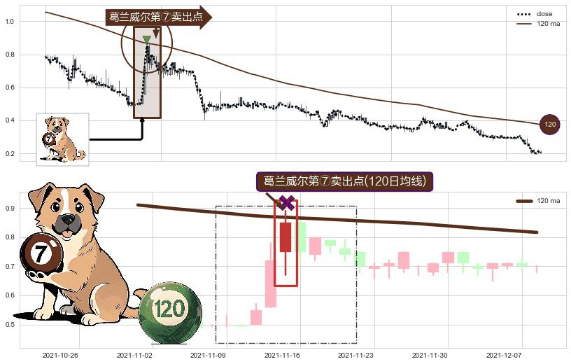形态多维评估: ⚀ 2021-11-15-日显现 葛兰威尔均线 120日均线 第⑦卖出点 下降趋势的中继信号,后市看跌,卖出信号