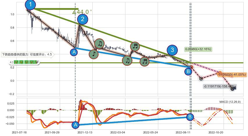 ➣ 预测:2022-10-13,【试探阻力】稳定目前下跌趋势的前提下,预测价格:0.120255