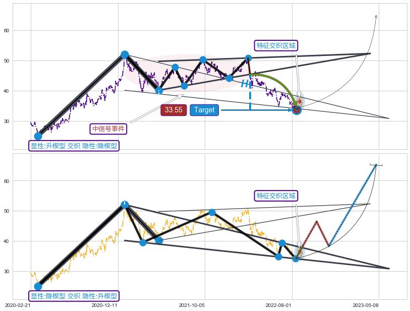➢ 高点影线(2022-08-08: 35.75 )→回踩→第二根k线高点(2022-08-02: 35.65 )