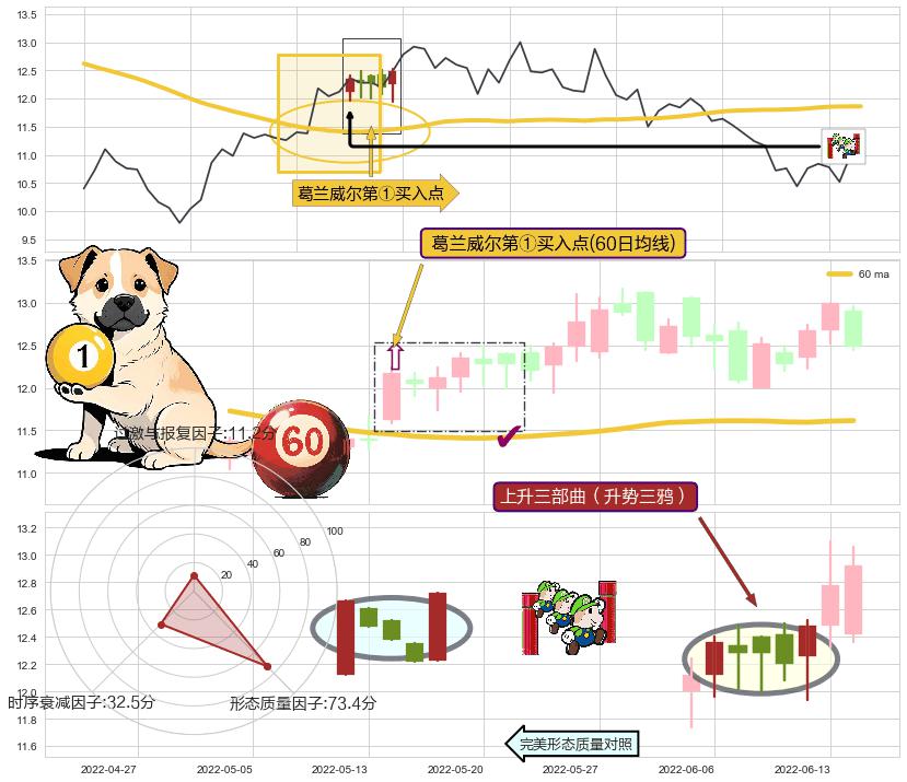 | 16 🅚:上涨螺旋桨形态 ➕ ☯️:缠论买卖点下降缠中枢AB形成后猜想拐点1买已到达,猜想后续持续拉升(均值回复) ☞ 看多信号 ⇥ 【🅚线】交织【图形】⇥ 综合量化分数: 55 | > |