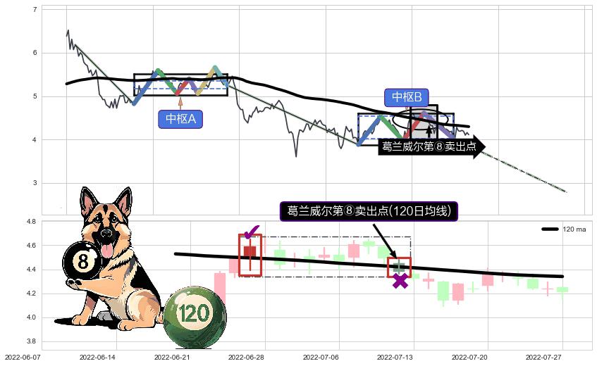➣ 【中枢B】:2022-05-12-2022-08-01,中枢由5笔构成,共56交易日, ZG=4.53, ZD=4.02